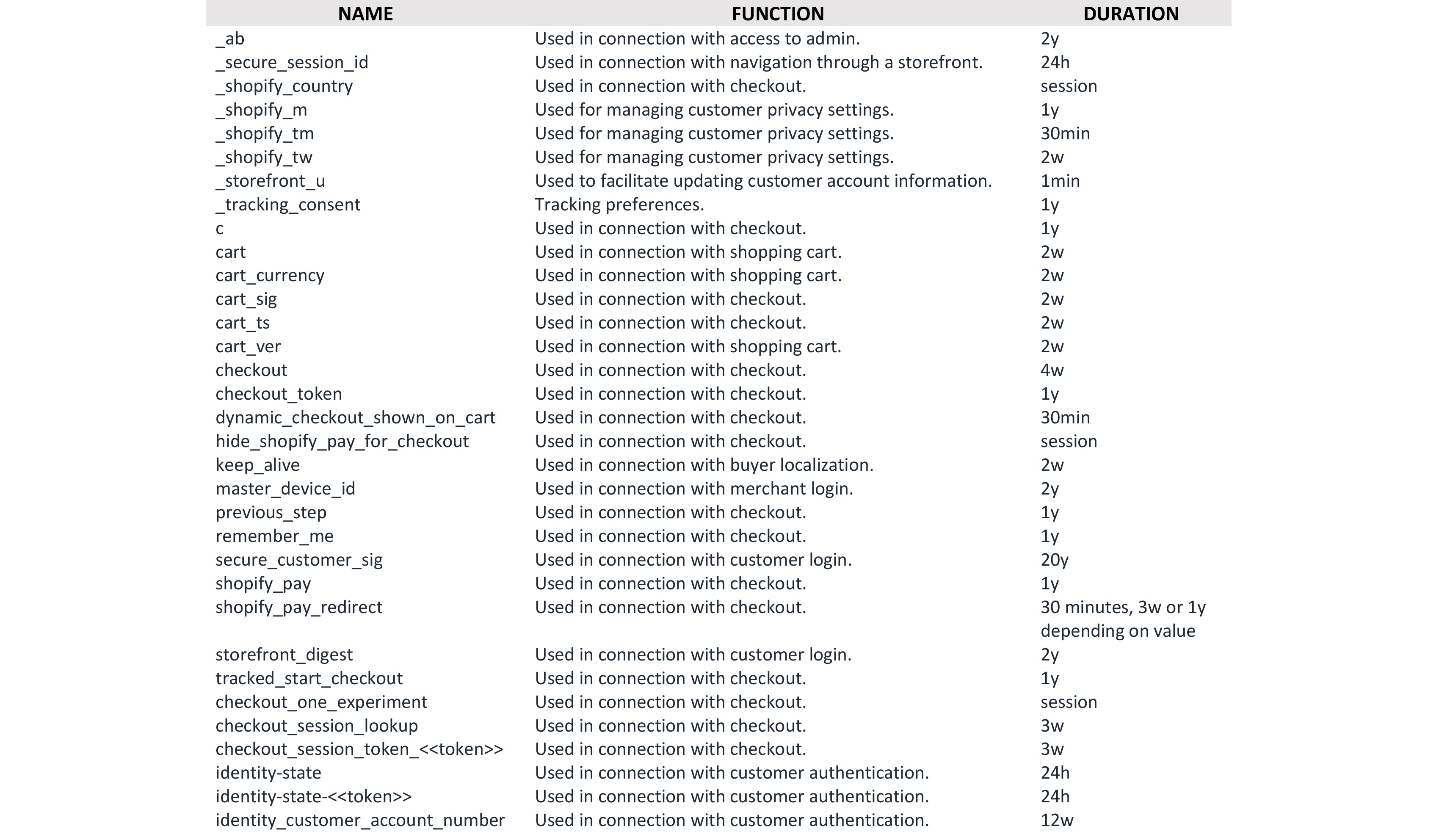 COOKIES NECESSARY FOR THE FUNCTIONING OF THE STORE