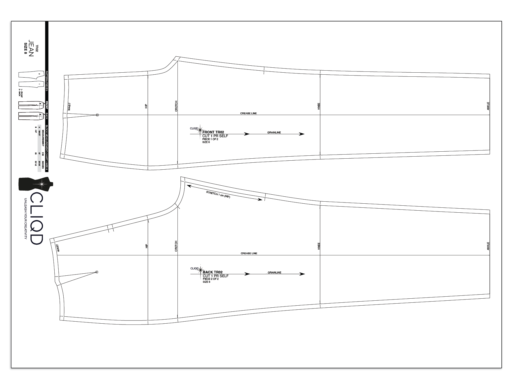 Guide will show you how to change the rise, leg fit and add design details (e.g. pockets, pleats & waistbands).